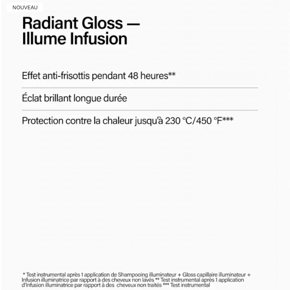 3. Booster : Mélanger quelques gouttes dans votre masque ou après-shampooing Radiant Gloss pour intensifier la nutrition